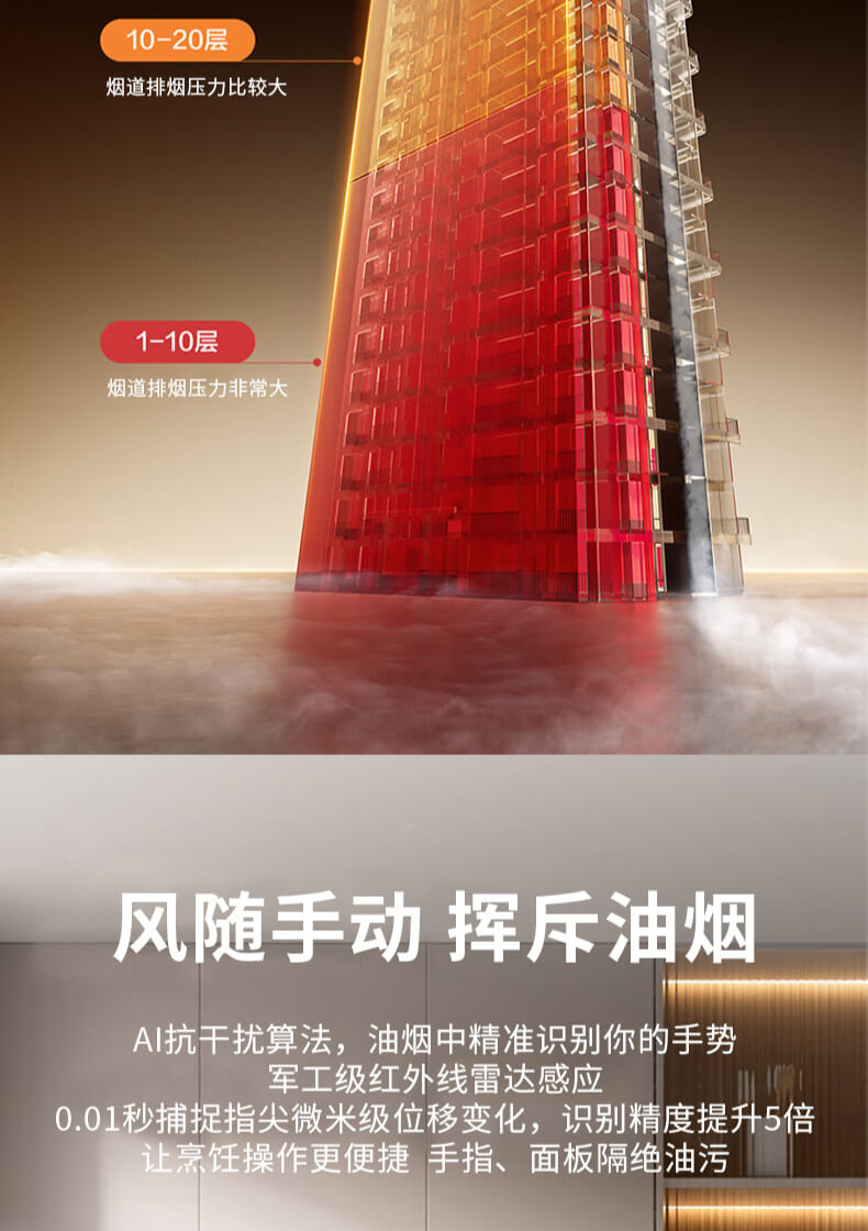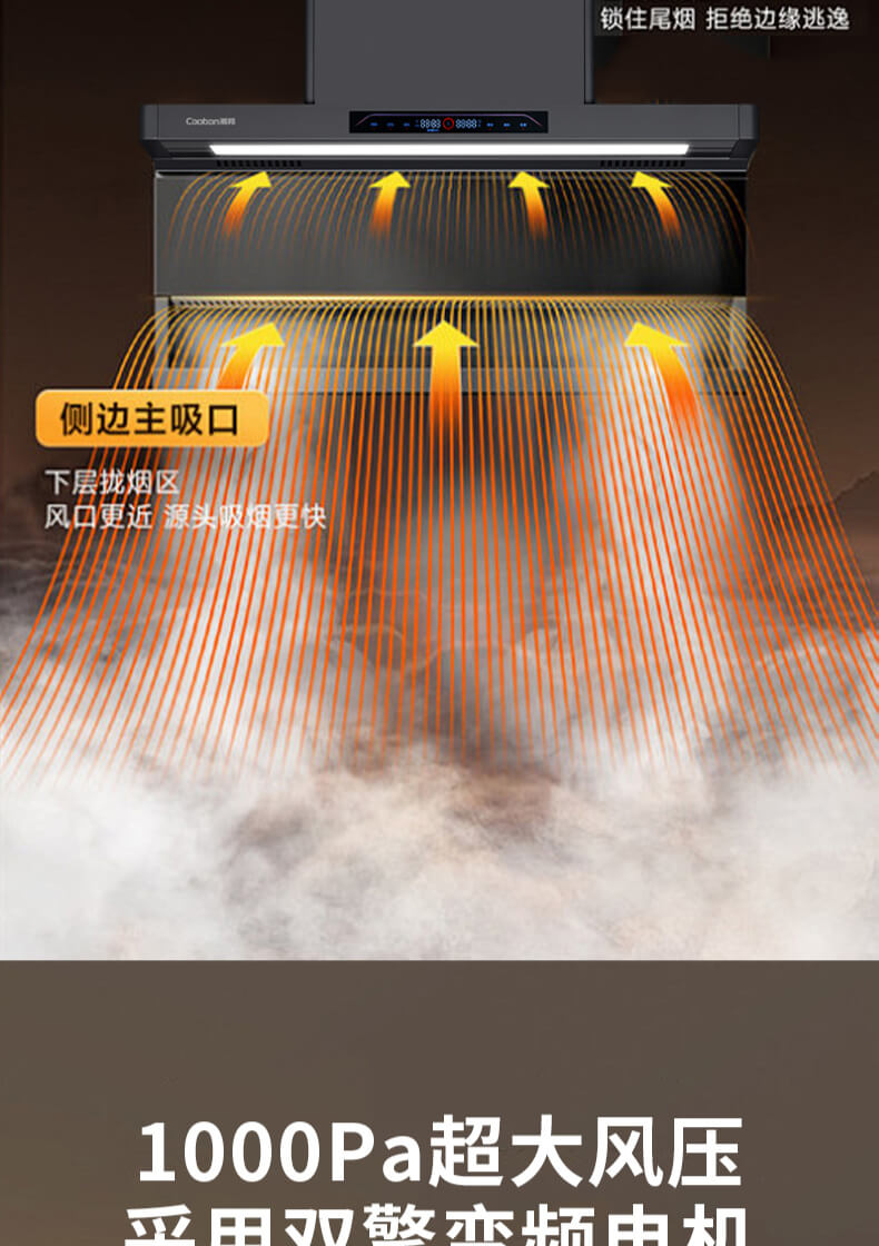 疏水疏油抗刮花,27方頂側雙吸,1000Pa變頻大風壓,自清洗,揮手智控