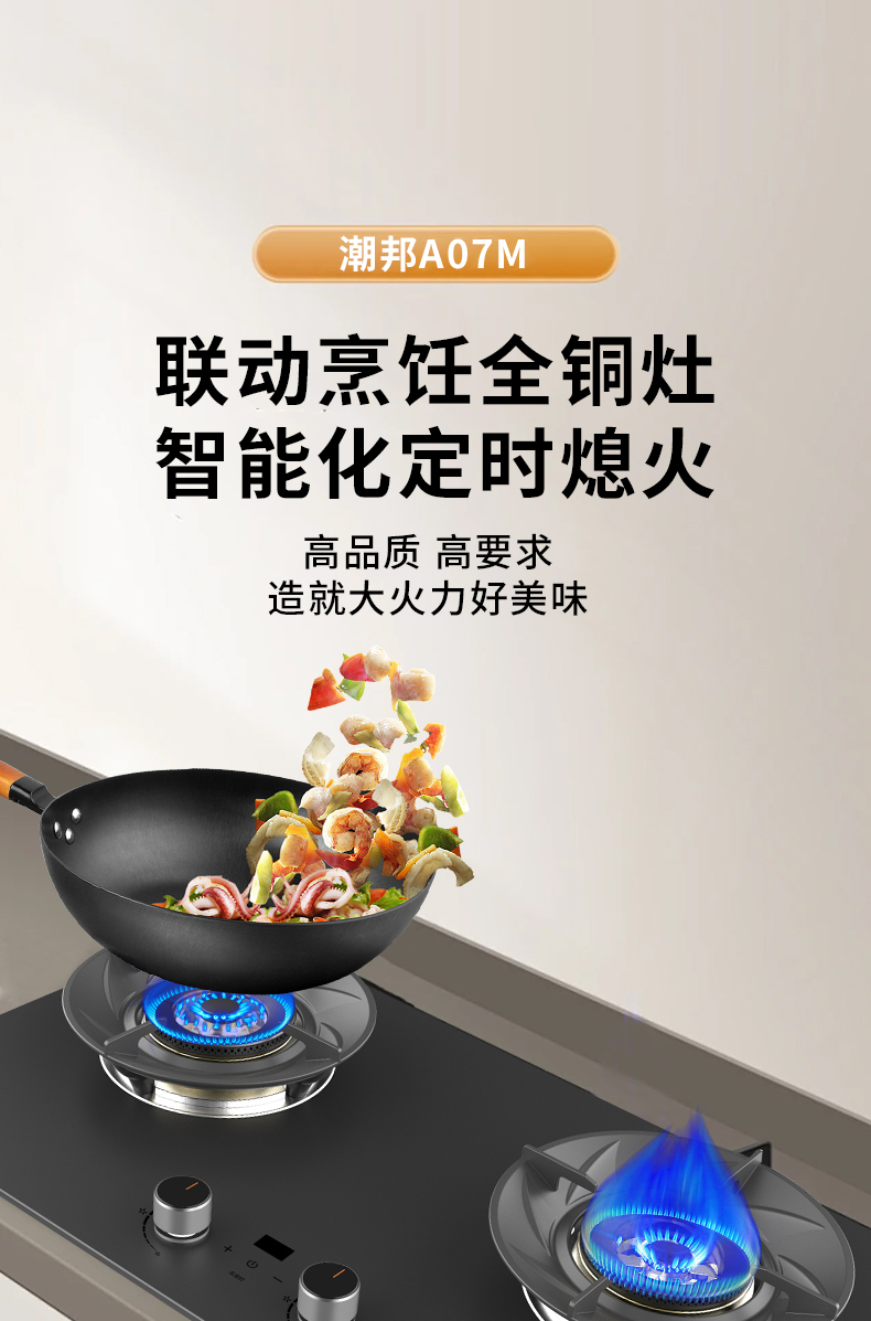 大火力,70%熱效率;智能煙灶聯動;全銅燃燒器;完全可拆分設計;主動熄火保護;