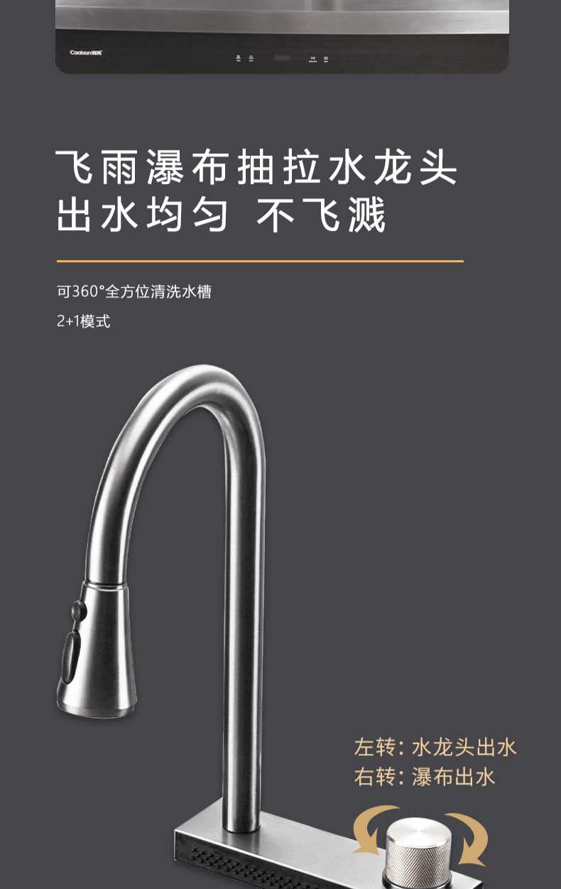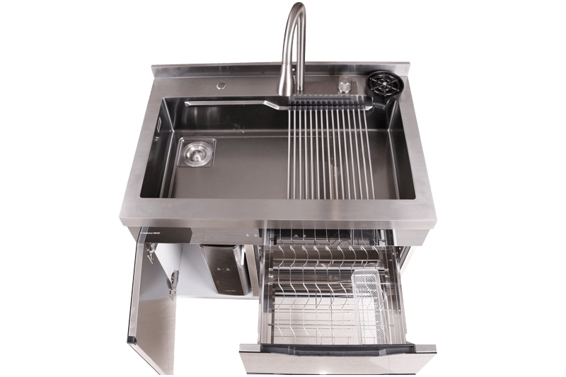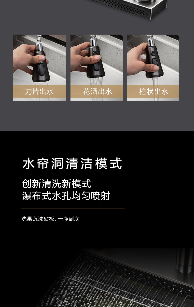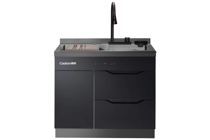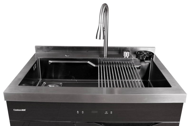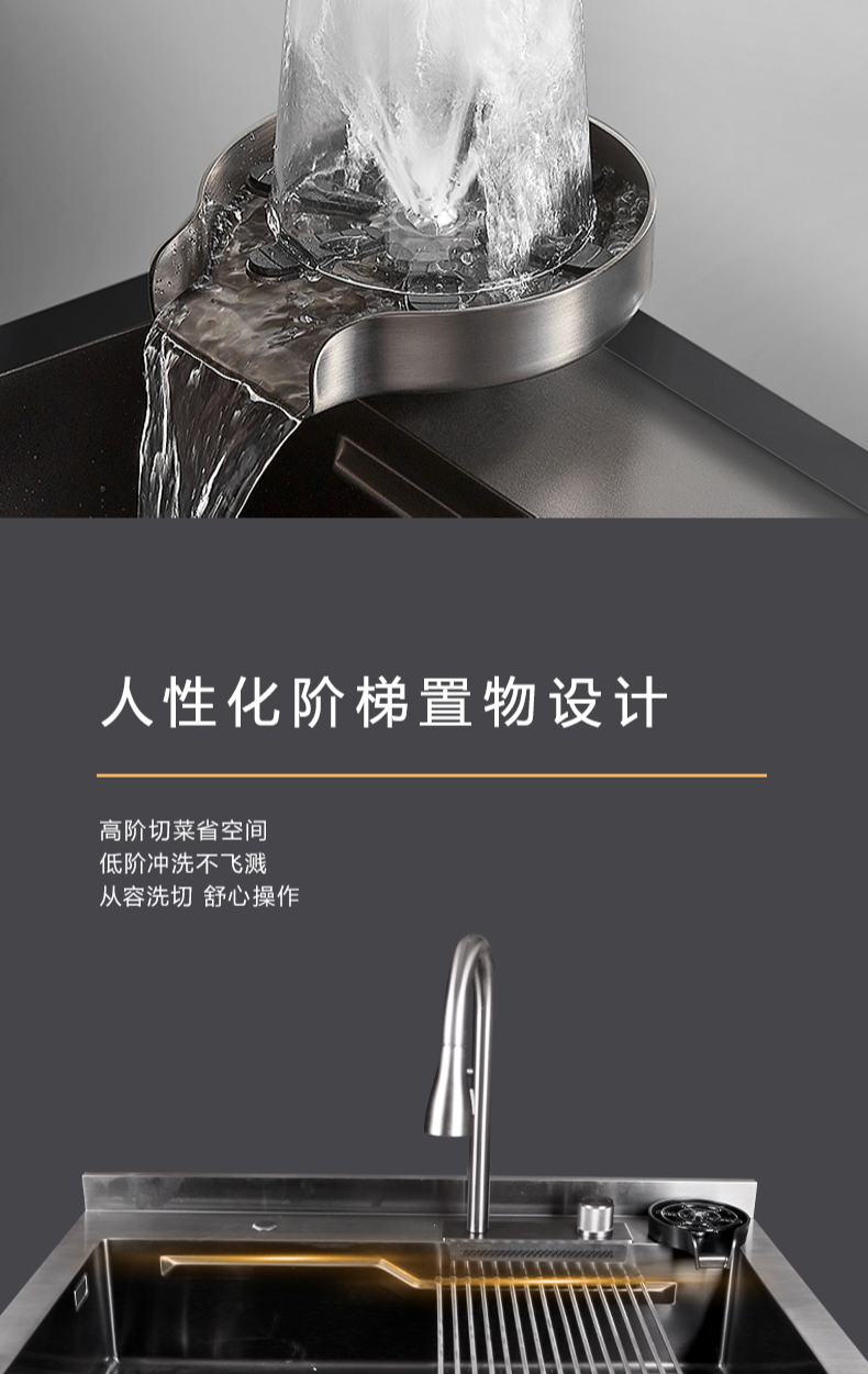 40L大單槽,黑鈦納米涂層,強力清潔洗杯器,雙層保潔柜,階梯置物不飛濺,一體沖壓